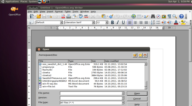 Nu kan vi skapa en aktivator som startar en grafiskt applikation på fjärrdator. Jag har inte installerat OpenOffice på FreeBSD så anvädar jag en annan Ubuntu för att ge exempel.