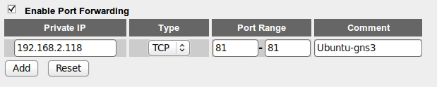 map em0 192.168.0.0/24 -> 0/32Skapar port forwardning till www server på Ubuntu med IP-adress 192.168.0.10. Server ska köra på port 81 eftersom port 80 är redan upptagen i mitt fysiskt LAN.
