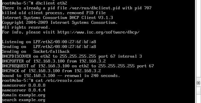 Snabbt check på Dator2 - tillfälligt med Ubuntu. Jag tycker att jag kan radera option domain-name i dhcpd konfig.