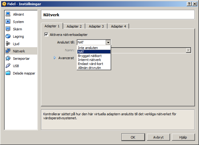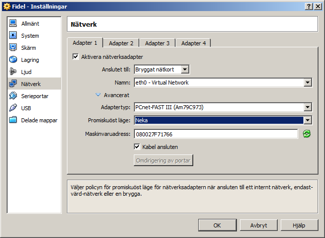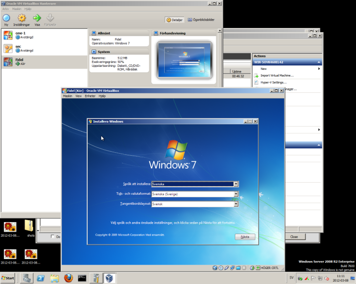 (Det är inte bra ideé att använda Hyper-V och VirtualBox samtidigt. Hyper-V startat automatiskt först och störar VirtualBox arbete.)